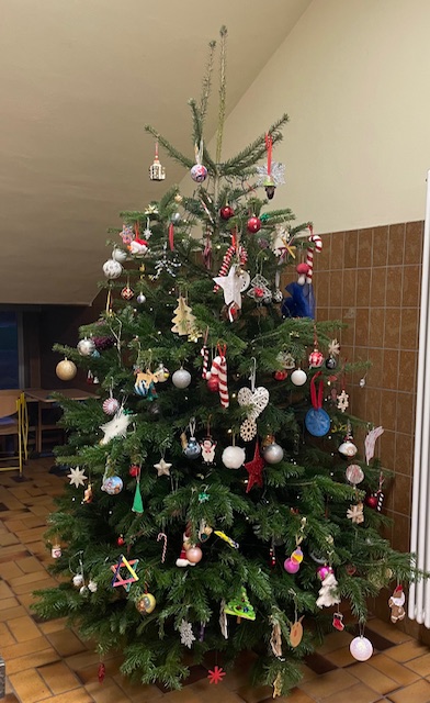 Im Flur steht seit diesem Jahr ein großer Tannenbaum, den die Kinder gemeinsam mit selbstgebasteltem Schmuck verziert haben. In den Klassen sorgen Adventskalender für tägliche Überraschungen und weihnachtliche Stimmung. Einmal die Woche treffen sich alle Klassen auf dem Schulhof um gemeinsam Weihnachtslieder zu singen und die Vorfreude Weihnachten zu teilen.