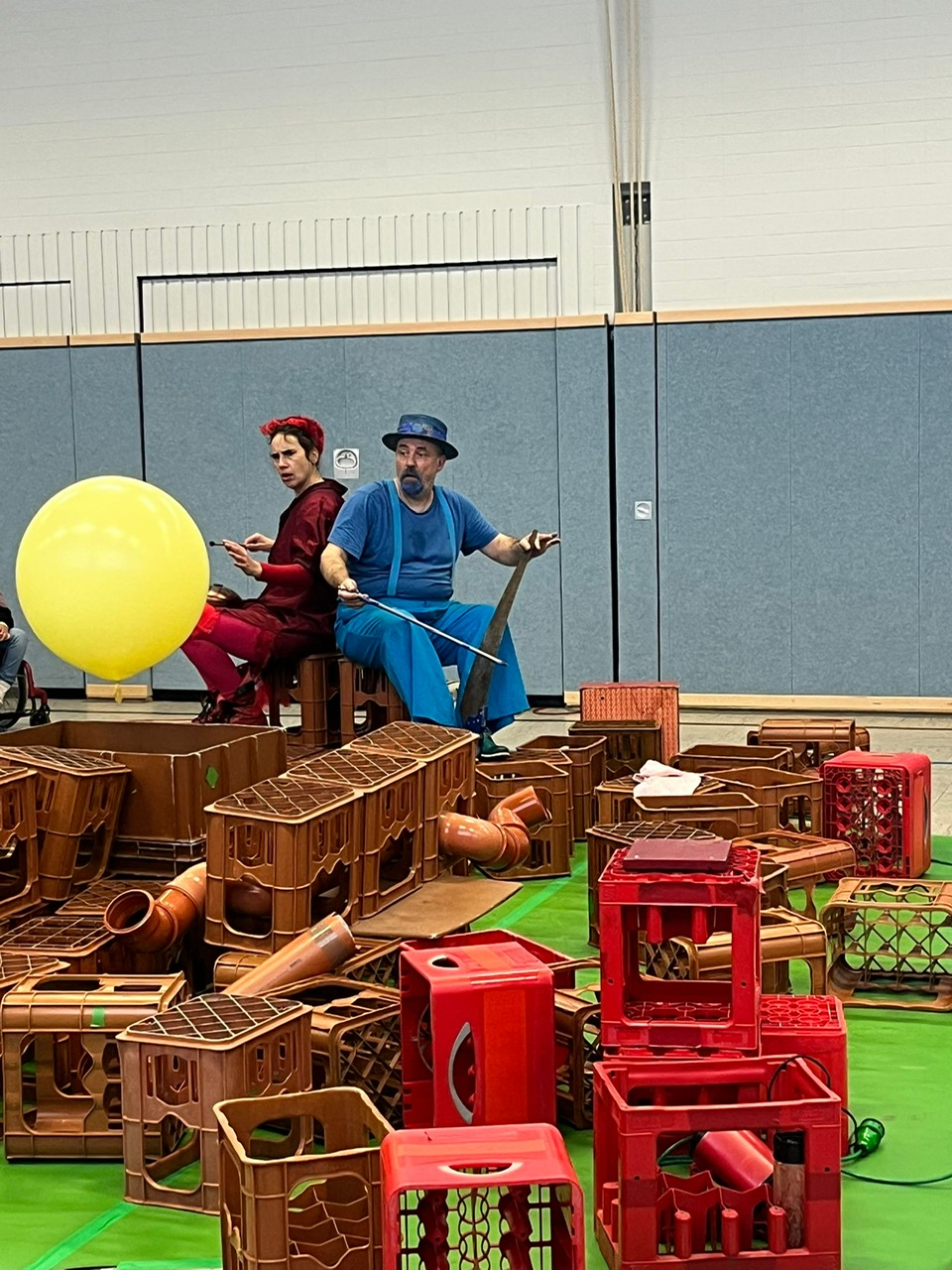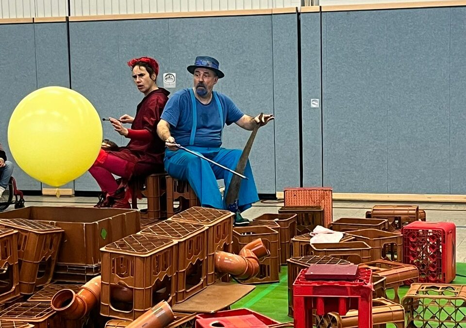 Am Dienstag, 25.11.25 besuchten uns zwei Schauspieler des KOM´MA Theaters. In zwei Vorstellungen konnten sich die Kinder der Klassen 1/2  und 3/4  das Stück „Zwei Monster“ ansehen. Darin leben zwei sehr unterschiedliche Monster auf verschiedenen Seiten eines Berges. Sie können sich nicht sehen, sprechen aber durch ein Loch miteinander – und geraten dabei heftig aneinander, obwohl sie eigentlich vieles gemeinsam haben.